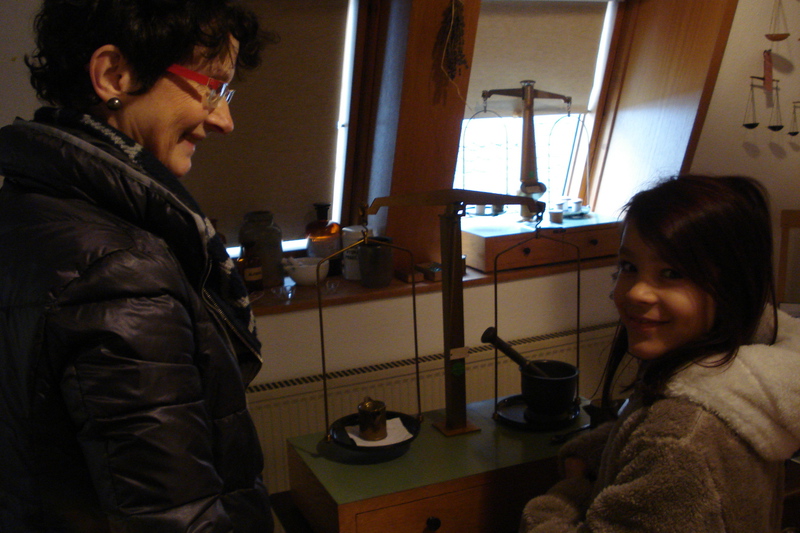 die Mädchen und Jungens im 2. Stock des Apothekengebäudes das Museum mit alten Geräten, Waagen, Gefäßen, und wundersamen Tierpräparaten. Auch ein Herbar, eine Sammlung von getrockneten ganzen