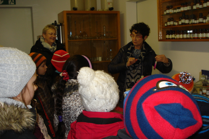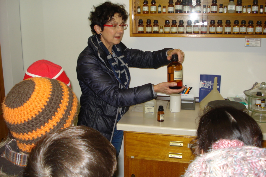 Pflanzen, konnte man anschauen. Im 1. Stock im Apothekenlabor zeigte Apothekerin Gertrud Eichhorn, wie man mit Hilfe von Indikatorlösungen leicht Säuren und Basen unterscheiden kann, weil sich