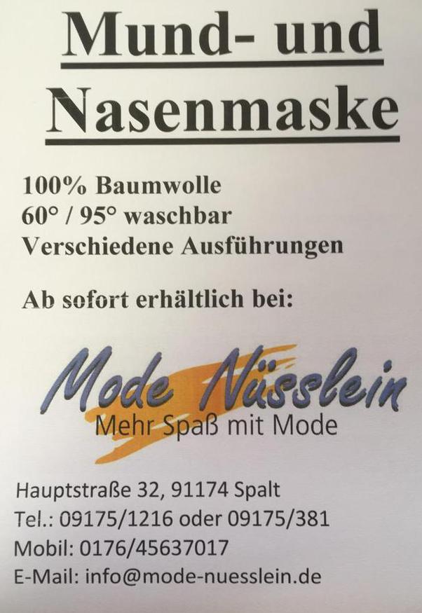 In Spalt sind Masken aus Stoff erhältlich bei Mode-Nüsslein und Masken aus Papier/Vlies bei Schreibwaren Kummerer.