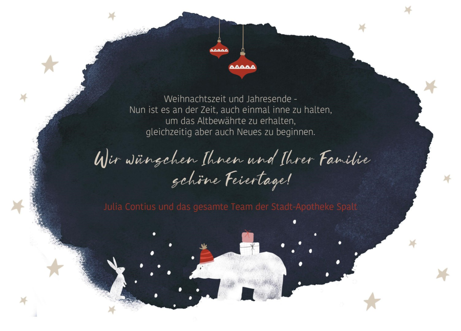 Außerhalb unserer Öffnungs- bzw. Notdienst-Zeiten wenden Sie sich bitte in dringenden Fällen an eine dienstbereite Apotheke.